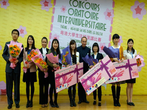 等八所高校的八名优秀选手围绕主题“珠三角成就你我”进行演讲,并由法语专业人士以及相关法籍专家组成评委团来给予评分。