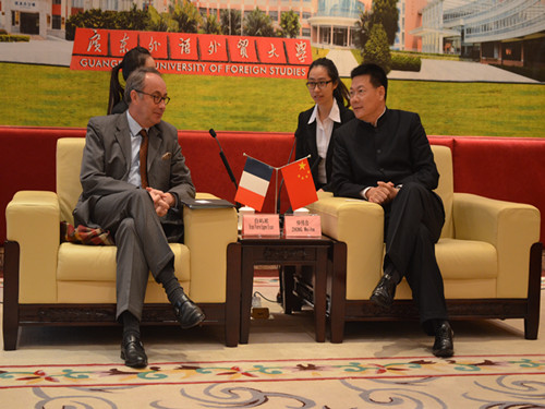 法语专业在华南地区首屈一指,为经济发展以及对外交流培养了大批优秀人才。仲校长尤其谈到了法国广州总领事馆对“欧罗巴”文化节的大力支持,借助这一传播欧洲文化的平台,西语学子充分展示了自己的才华。仲校长提到,总领事馆对广外的发展非常重视,先后三位教授被法国政府授予骑士勋章。在此,他特别强调了郑立华教授带领的团队对中法企业的跨文化研究做出了巨大贡献。
