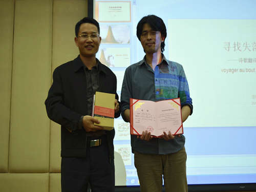 本网讯 12月17日晚7点,在图书馆负一层报告厅举行了由青年翻译家、92届法语校友何家炜主讲的主题为“寻找失落的诗意——诗歌翻译的可能与界限”的讲座,本次讲座由法语系主任杨晓敏主持,邀请了原广外校长黄建华,中文乐天堂