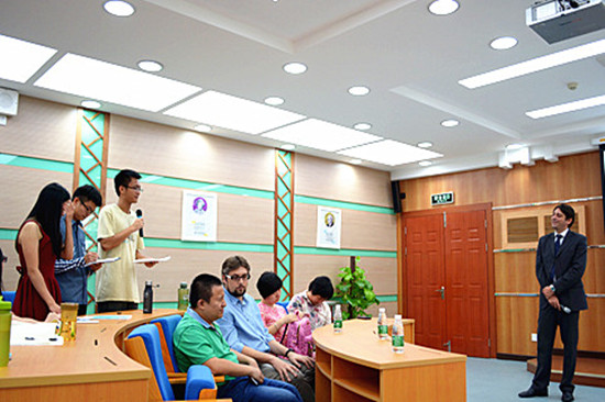 讲座的开始,白思诺先生对本次活动的出席人员表示了衷心的感谢。随后,讲座进入了问答交流环节。白思诺先生首先与从意大利留学归来的学生们进行了交流,让在场的其他学生们大致了解了在意大利的学习生活。他还热情地对在场的同学们所关心的学习、文化生活与奖学金等问题进行了回答。例如,在被问及意大利歌剧对现代生活的影响时,他回答说现代社会的意大利歌剧已不像以往那般普及。同时他也谈到,了解歌剧不能仅仅去享受美妙的声音,更重要的是知晓歌剧的内容与体会其中包含的深刻内涵。