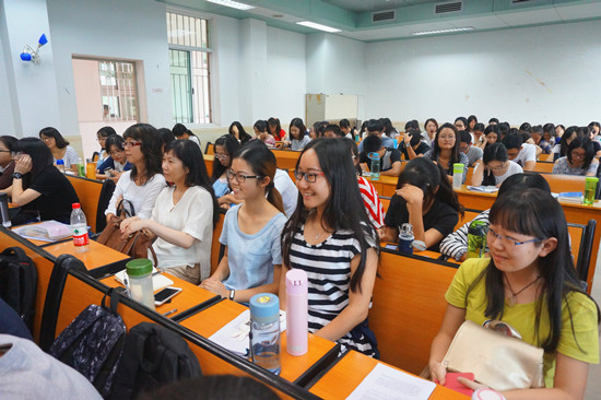 周老师传奇的学习、工作经历让同学们听得津津有味,不时地响起一阵阵欢笑声和掌声。