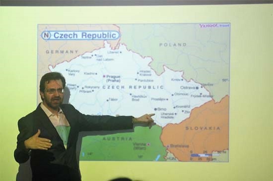 安德烈教授在展示捷克地理位置