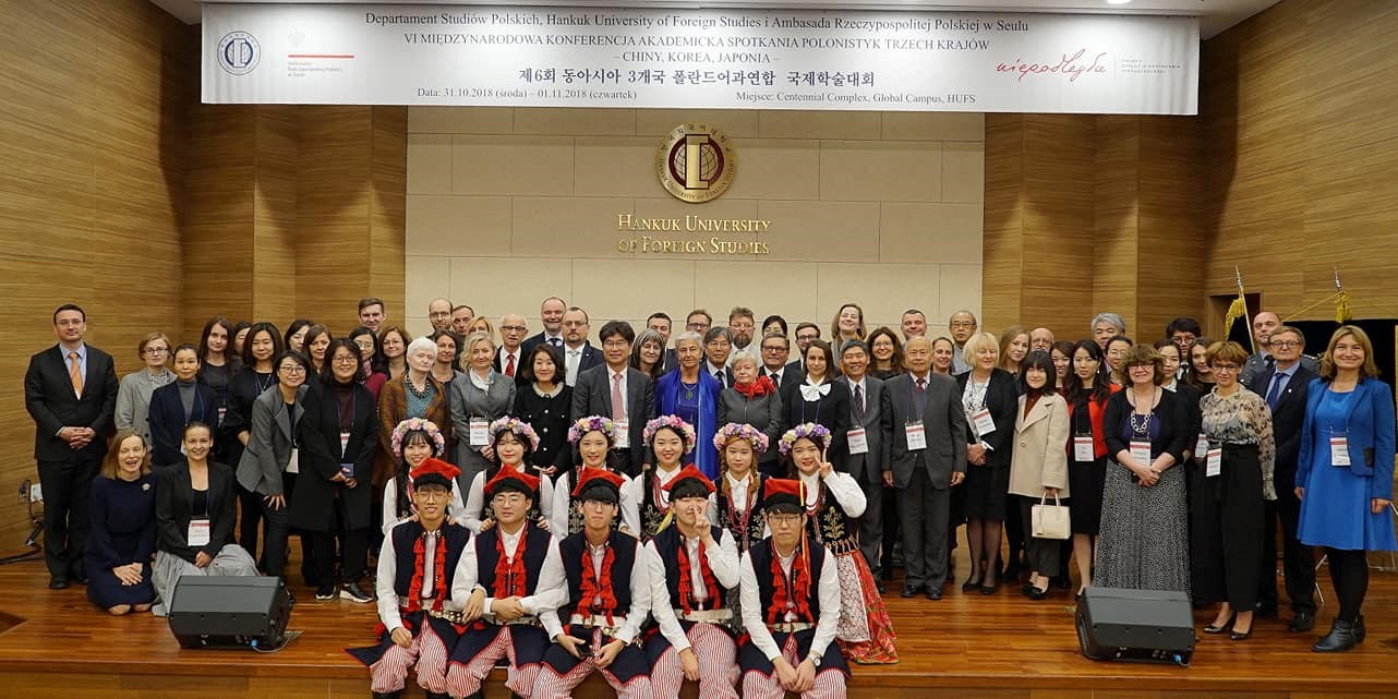 波兰驻韩国大使彼得·奥斯塔舍夫斯基(Piotr Ostaszewski)、波兰驻朝鲜大使克日什托夫·切宾(Krzysztof Ciebień)、波兰驻日本大使亚采克·伊兹多尔切克(Jacek Izydorczyk)、日本波兰文化中心主任玛利亚·茹拉弗斯卡(Maria Żurawska)、波兰驻华大使馆文化参赞马志伟(Jan Jerzy Malicki)、韩国外国语大学副校长金钟硕(Kim Jong Suck)出席开幕式并致辞。他们肯定了中日韩三国波兰语学术研讨会对人文交流,特别是亚洲地区的波兰语教学研究做出的贡献。波兰国家高等教育交流委员会(Narodowa Agencja Wymiany Akademickiej,以下简称NAWA)波兰语推广部主任卡米拉·邓宾斯卡(Kamila Dembińska)女士介绍了NAWA在高校合作交流方面所提供的项目支持。雅盖隆大学弗瓦迪斯瓦夫·米奥顿卡(Władysław Miodunka)教授发表主旨演讲,他强调了中日韩三国波兰语学术研讨会在波兰语全球区域研究中具有重要地位,并表达了对过往几届学术研讨会成果的肯定和对新一届中日韩波兰语学术研讨会的由衷的期待与祝福。
