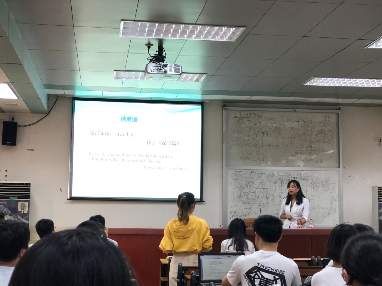 问答环节中,同学们围绕翻译方法、速记技巧、升学、口译职业规划和如何打开口译市场等多个方面提出了大量的高质量问题,张晏老师对此分别进行了详细解答,并与同学们分享了在德语口译教学中积累的学习方法、介绍了职业口译员的工作日常、传授了口译职业规划的宝贵经验,同学们从中得到了大量关键而实用的建议。