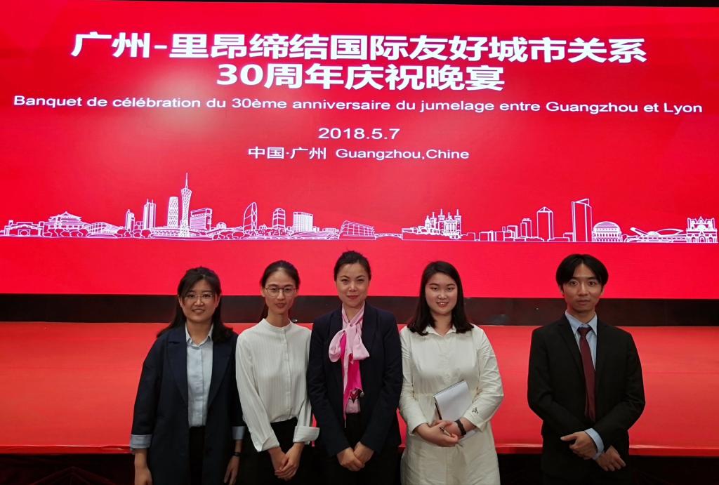 法语MTI翻译硕士的4位研究生在陈湘蓉老师的带领和指导下,为本次的经贸交流会和晚宴提供翻译和志愿服务,并顺利地完成了任务,获得广州市政府外事办的高度评价。