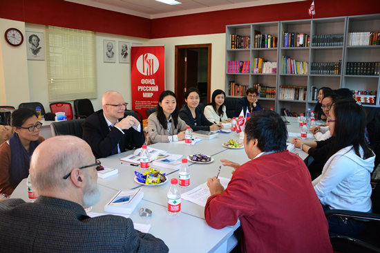 和华南师范大学共同组办的“华南法语专业博士论坛”在广外北校第四教学楼三楼俄语中心举行。法国驻广州总领事馆大学与科技专员Christophe Bonté,总领事馆语言与教育合作官员Julie Marbot,蒙特利尔魁北克大学语言学与语言教育学系教授、华南师范大学客座教授Claude Germain,法国巴黎东方语言文化乐天堂