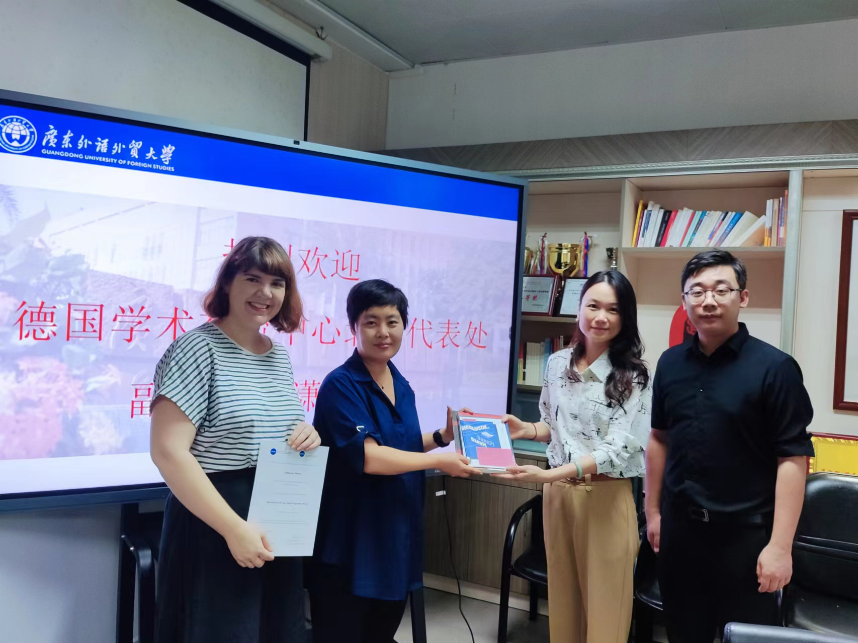 副院长卢铭君教授和德语系主任吴晓钢副教授进行了深入交流,德国学术交流中心驻广外语言专家Katharina Eberle女士出席会议。