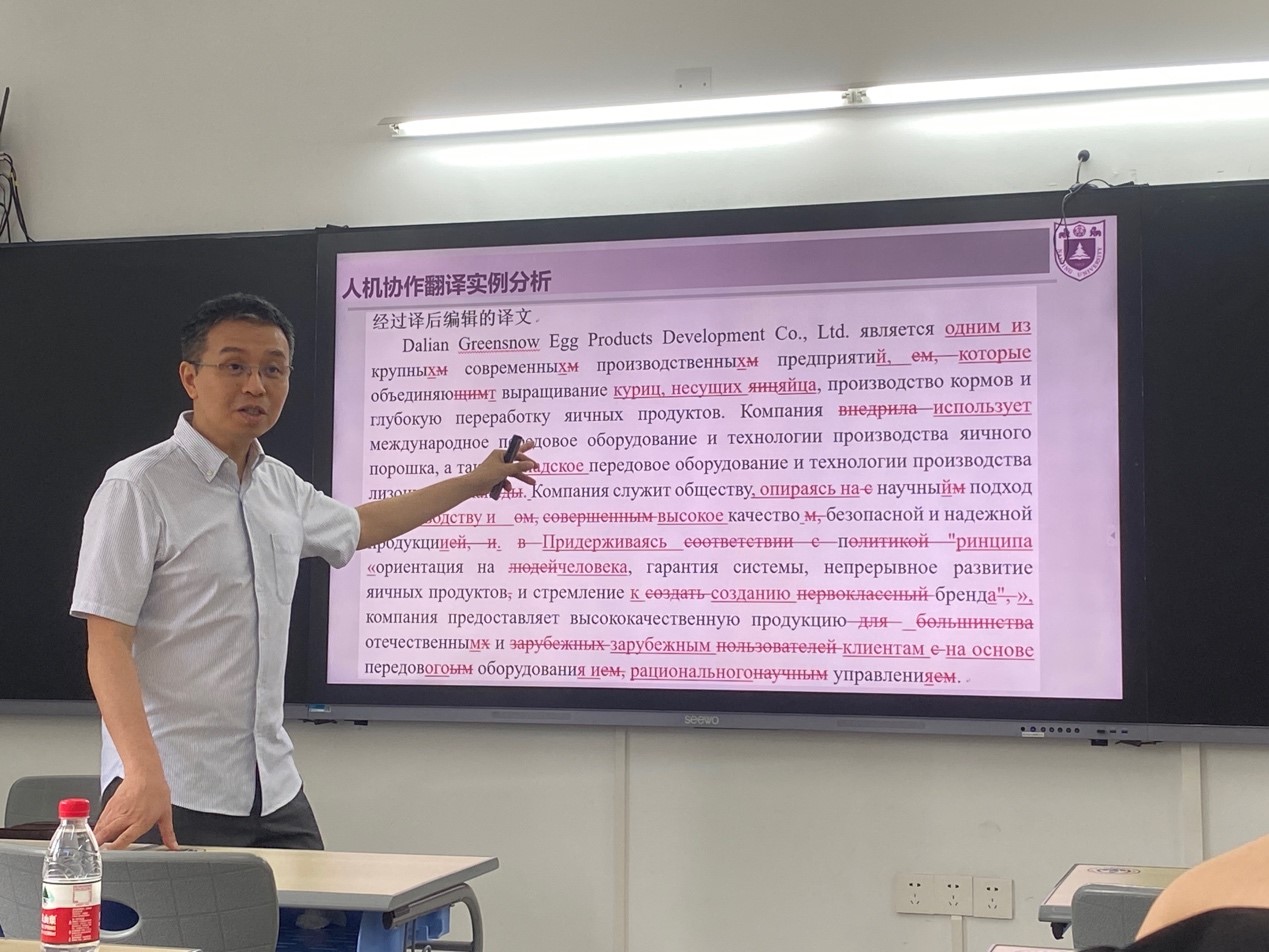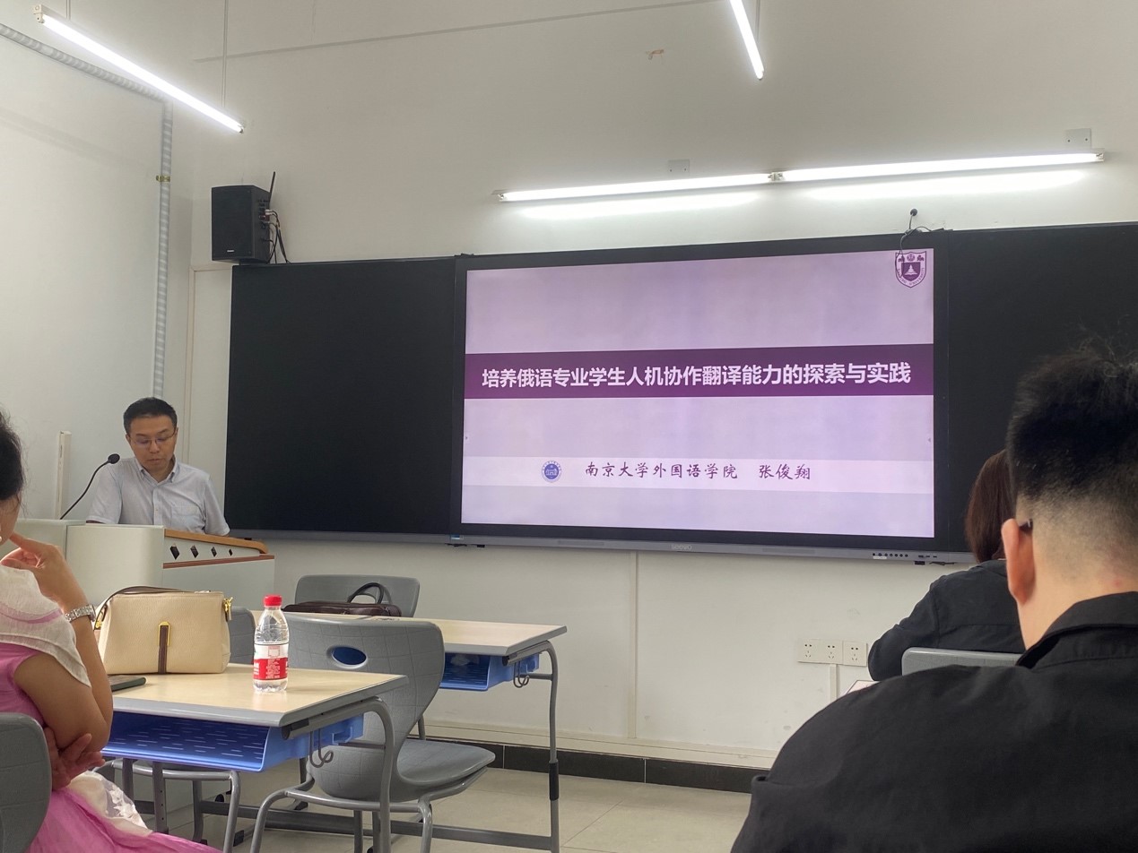 副院长、中国俄罗斯东欧中亚学会俄语教学研究会常务理事、中国高等教育学会外语教学研究分会理事、中国中外文艺理论学会巴赫金研究分会理事张俊翔教授在一教南楼218教室为俄语系师生带来宗岱翻译讲坛学术讲座“培养俄语专业学生人机协作翻译能力的探索与实践”。本次讲座由俄语系系主任陈欢副教授主持,师生积极参与互动,现场氛围活跃。