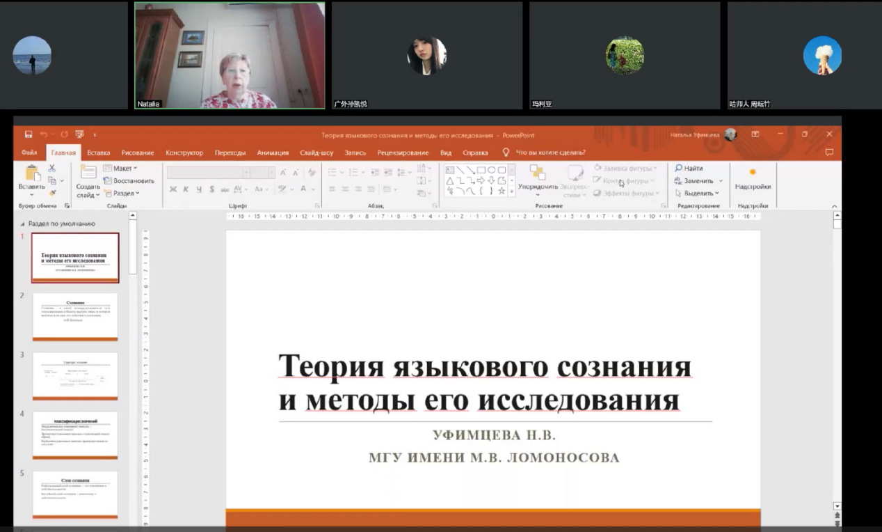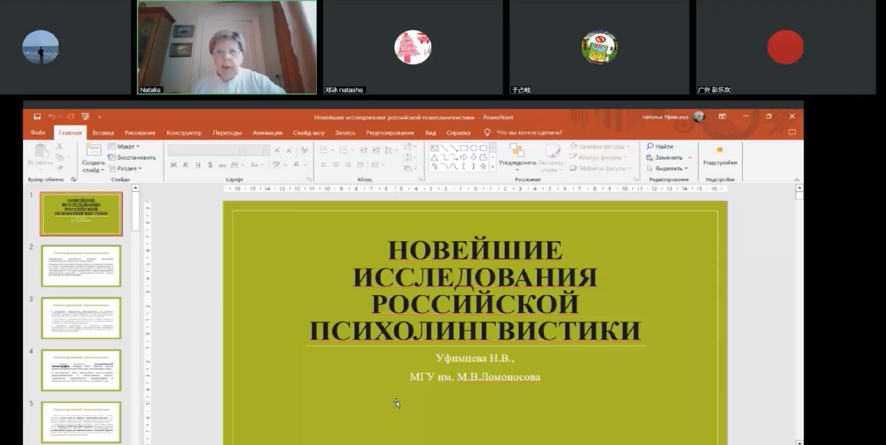 顺利举办,反响热烈。俄罗斯莫斯科国立大学乌菲姆采娃·娜塔莉娅·弗拉基米罗芙娜(Уфимцева Наталья Владимировна)教授受邀为俄语系师生做了七场生动有趣的讲座,带领大家深入了解了俄罗斯心理语言学的历史及发展、俄罗斯心理语言学各大学派的研究、俄罗斯心理语言学研究焦点——语言意识及其研究方法、以及俄罗斯心理语言学领域的最新研究内容。此外,还分享了论文的写作方法、《心理语言学问题》核心期刊的选题和投稿要求、以及如何申请莫斯科大学的博士等重要内容。