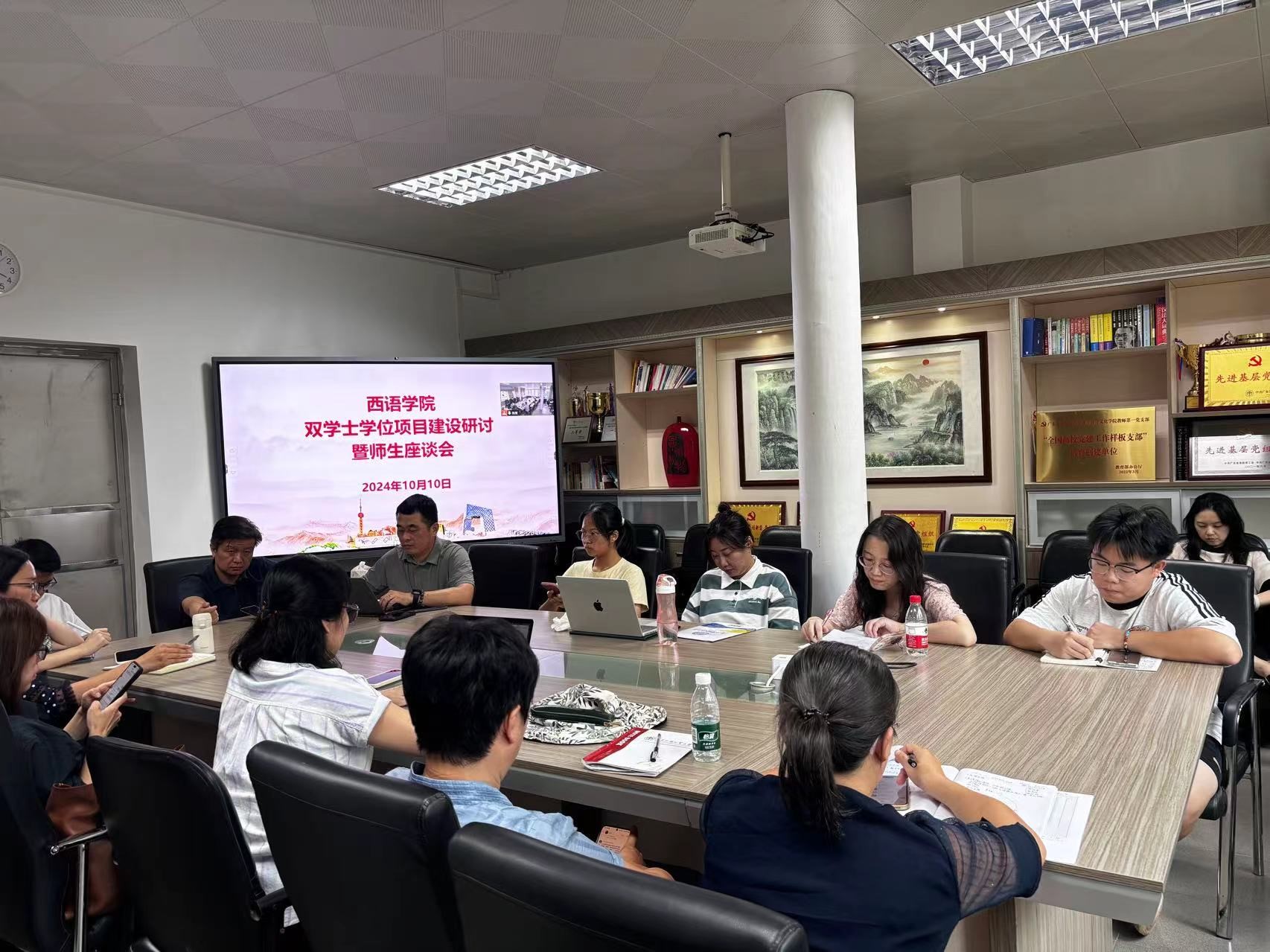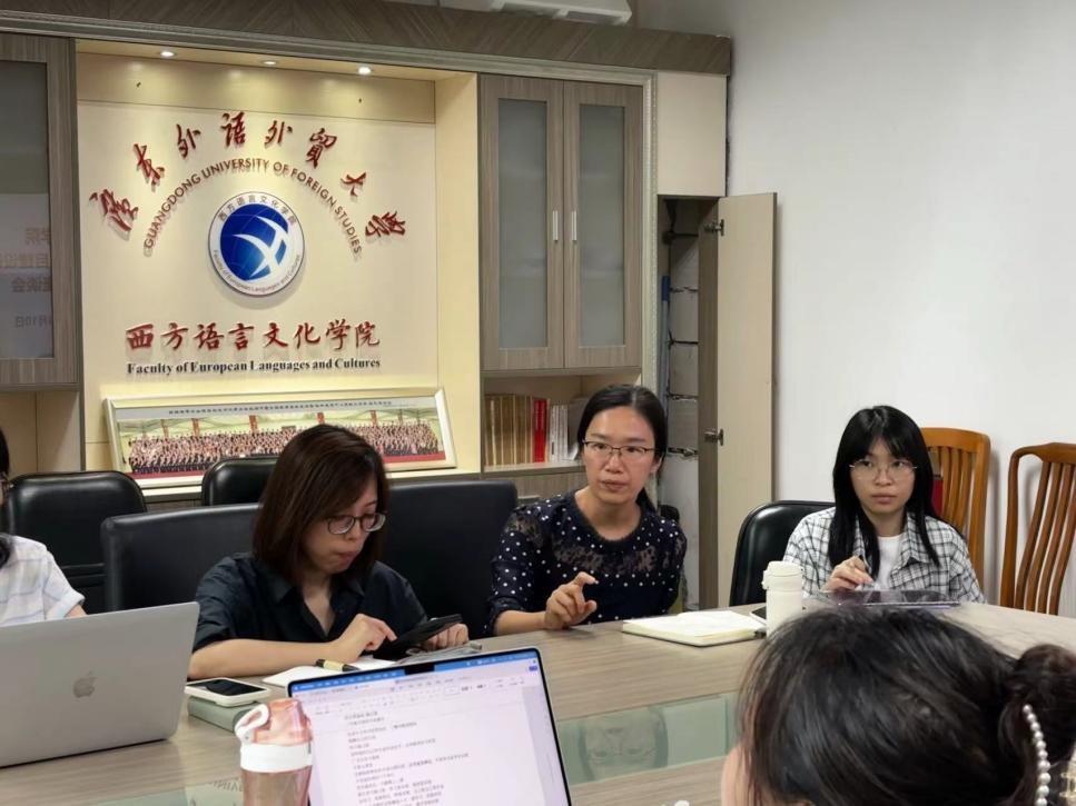 国际贸易系系主任田云华,法语系主任叶剑如、德语系主任助理张思源、西班牙语系主任吴凡、俄语系主任陈欢、意大利语系主任张海虹、葡萄牙语系主任助理杨菁,教务办公室老师以及数名西语2024级双学士学位班级学生代表。本次会议以双学士学位项目的建设研讨,就学生提出的关于学习方面的问题、建议以及未来规划上的疑惑展开讨论,各领导老师给出了一些建议并对同学们作出了殷切希望。