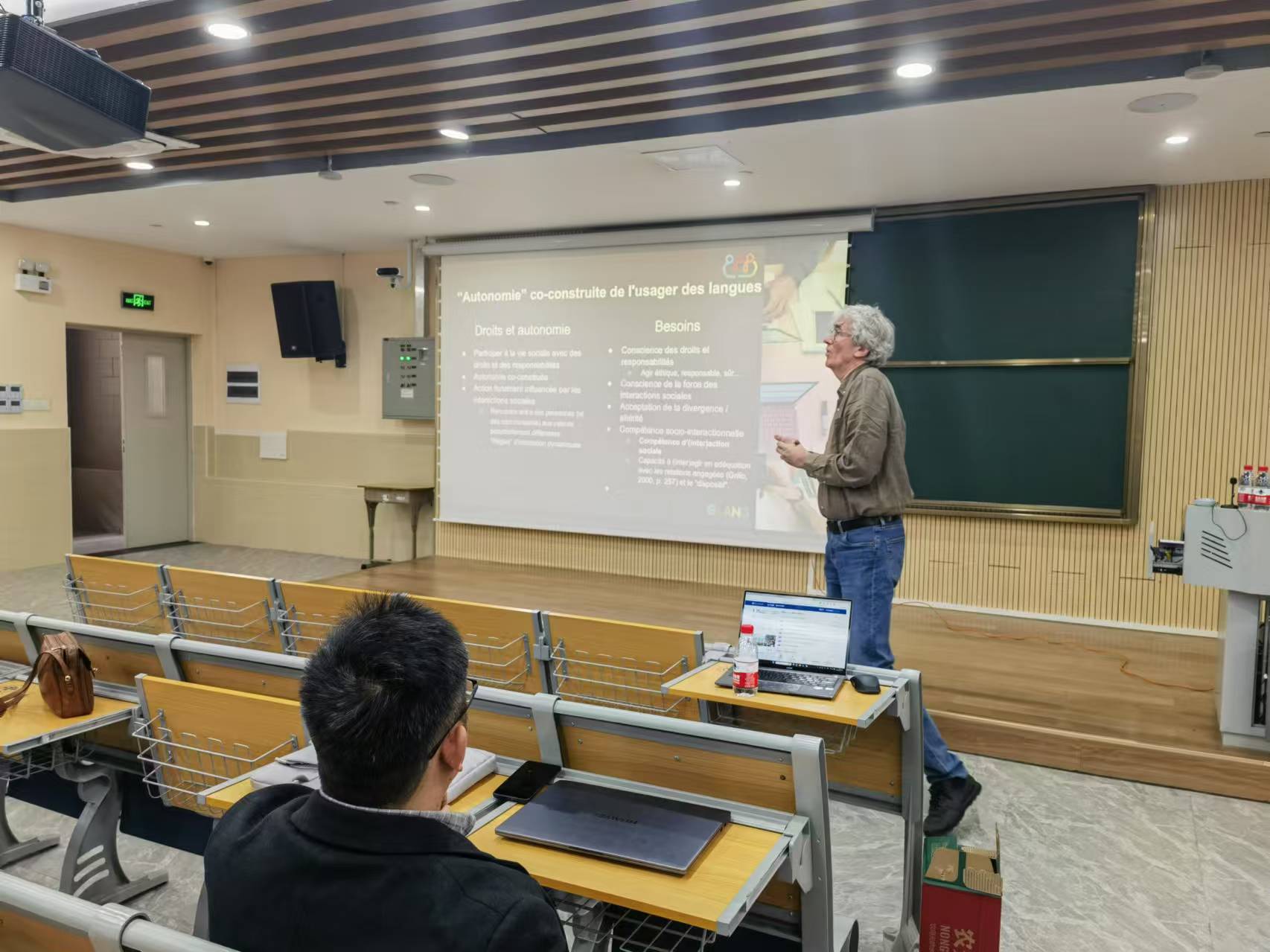 Olivier教授从一个软件入手,让同学们了解了如何搜索高频词,然后以autonomie(自主)作为切入点,讲述法语教师如何让学生掌握自主学习的方法,并解释了自主的内核,(通常是和另外一个人一起构建其含义),以及自主所代表的构建规则和构建责任。