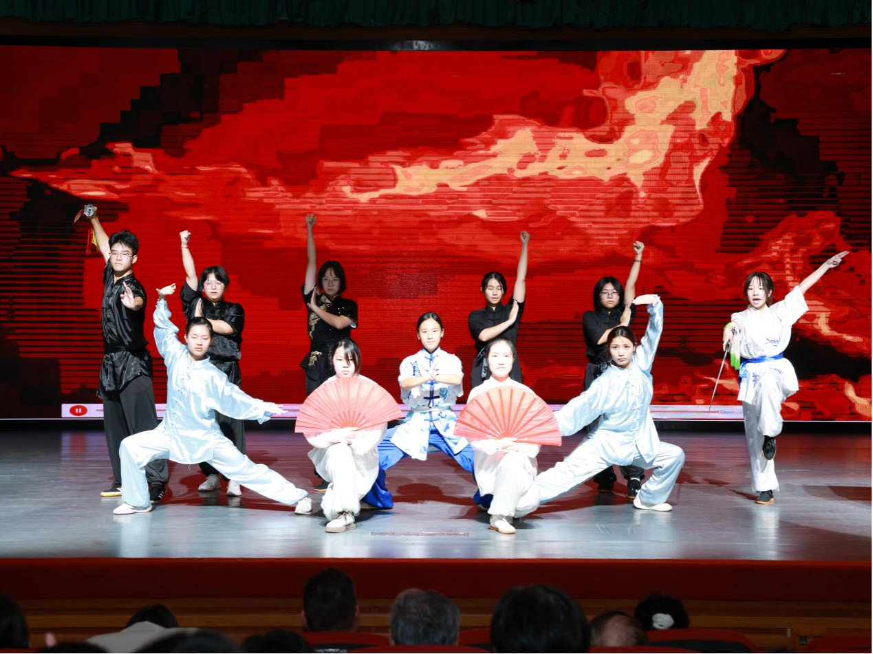 致辞环节结束后,全场嘉宾与师生共同拍摄合影,定格六十周年庆典的珍贵瞬间。在表演环节,学生们献上了丰富多彩的文艺表演。武术《广袤英豪立武魂》刚劲有力,展现中华武术精神;琵琶独奏《大浪淘沙》悠扬婉转,传递东方古韵;德语合唱《Lorelei》则以经典诗篇旋律,演绎德语之美。