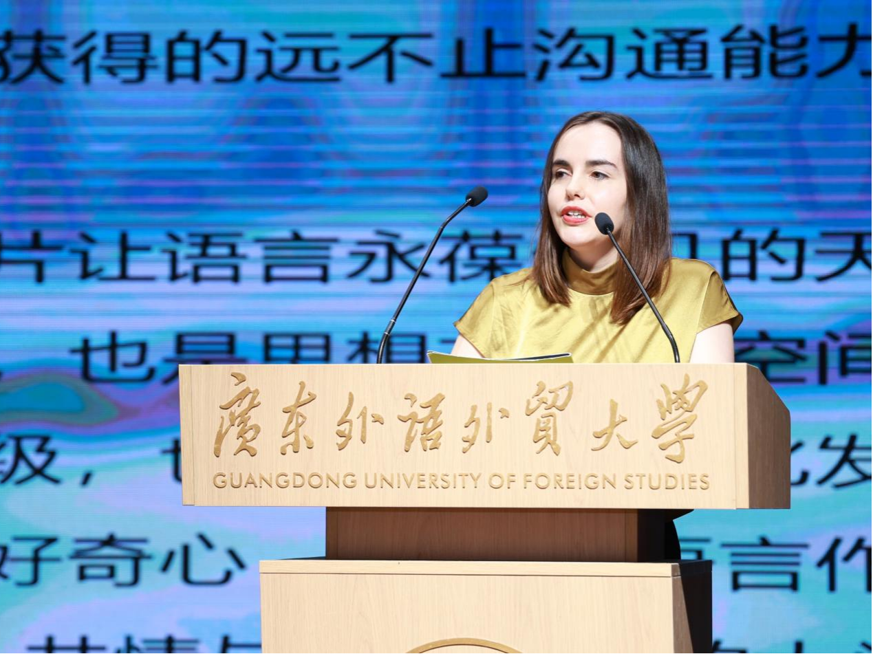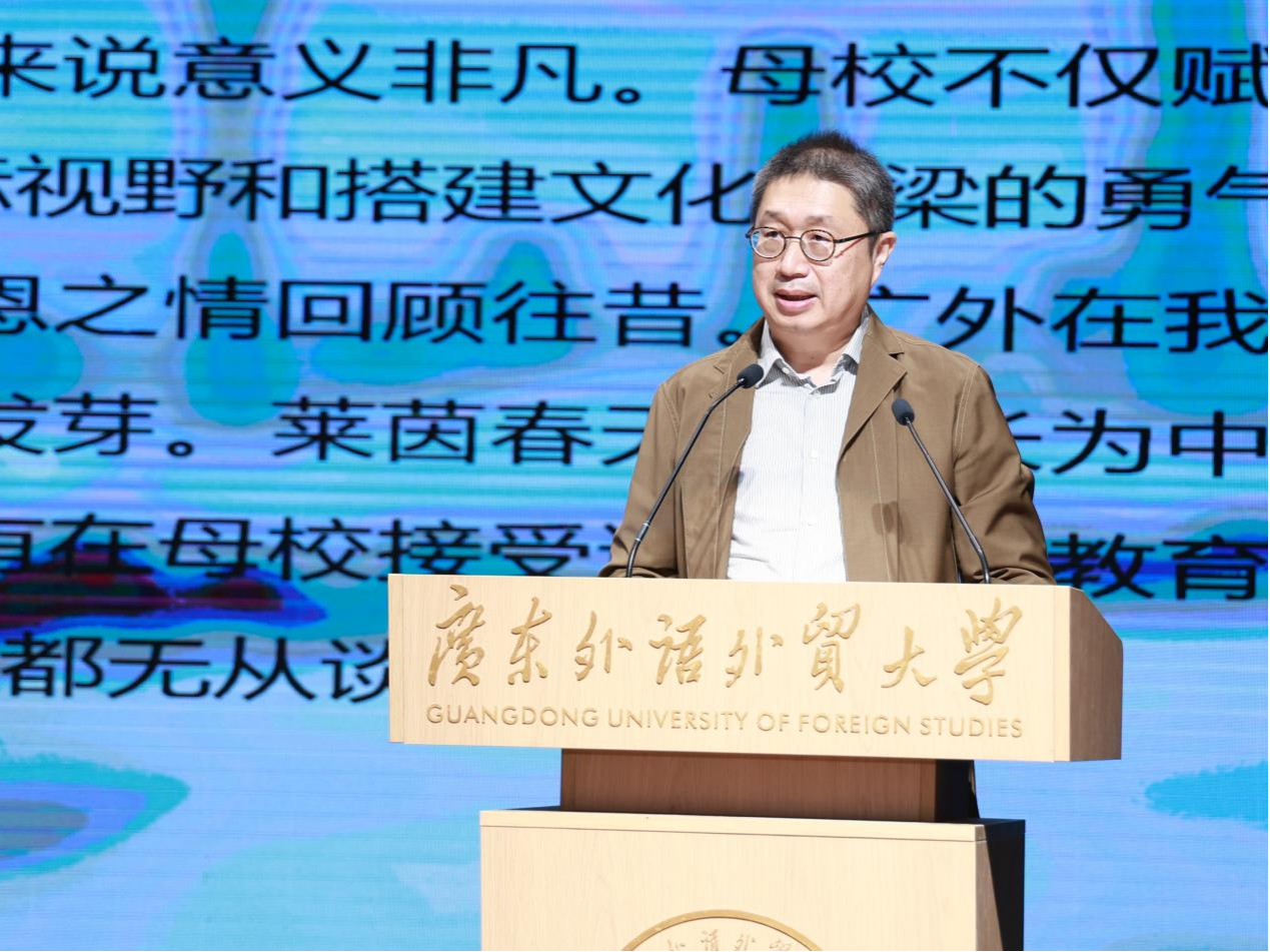 校长、广外1988届校友张帆在发言中分享了自己的感悟。他指出,广外不仅教授了语言技能,更赋予了学生开放的视野与搭建文化桥梁的勇气。他寄语各位学弟学妹,要珍惜校园时光,保持好奇、无畏探索,为世界发出自己的跨文化声音。