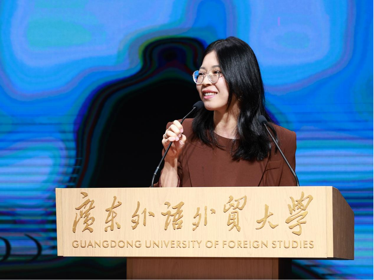 德语教学合作处主任杨佳芝在讲话中强调了语言学习的深层意义。她指出,掌握德语,不仅是习得语法词汇,更是学会用他人视角认知世界。她回顾了与广外十年合作历程,从教师培养到学术会议,双方始终致力于让语言永葆生机。面对数字化浪潮,她特别指出,教育的核心永远是人,思想的碰撞、心与心的对话,才是语言真正的生命力。