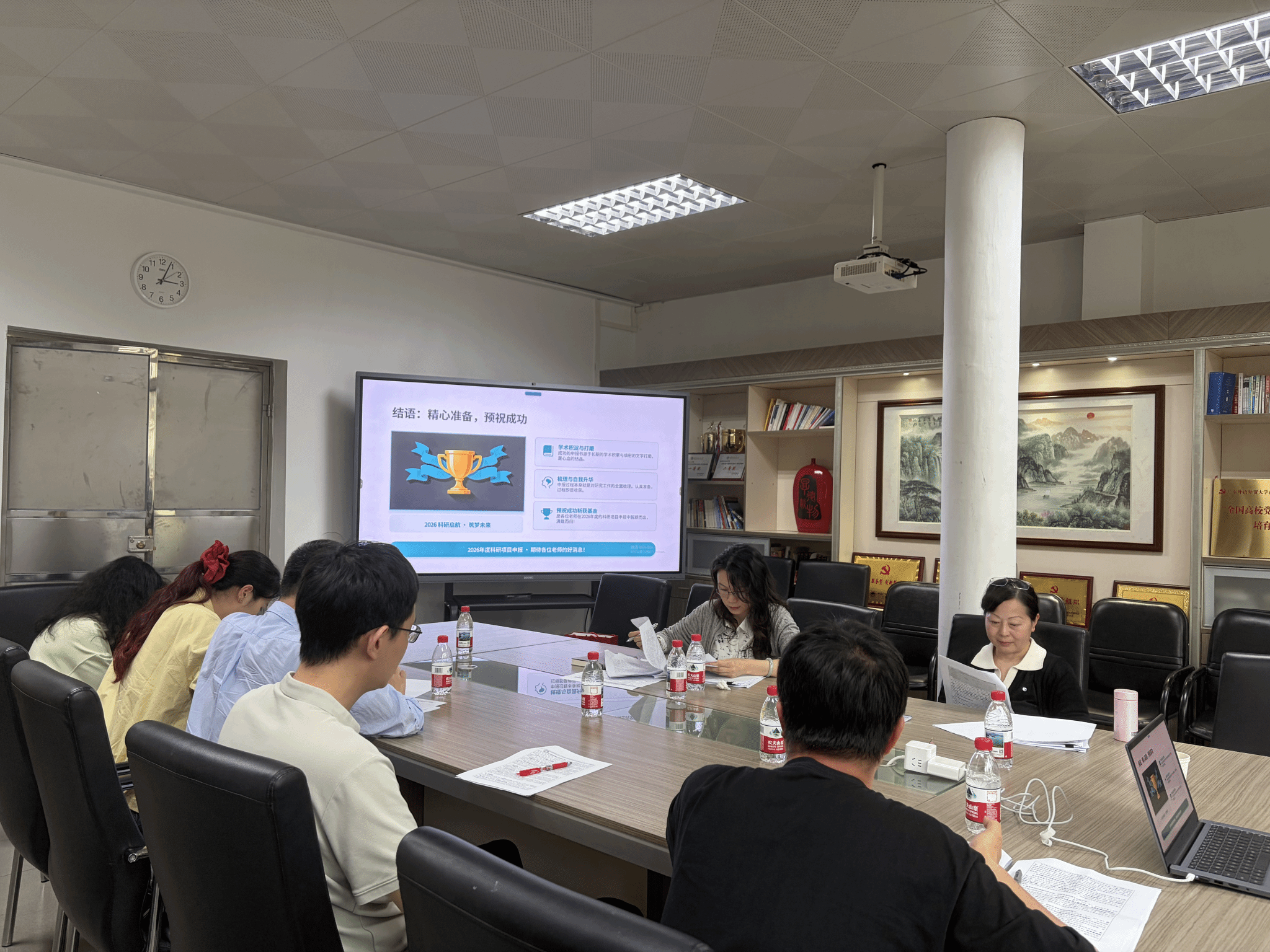 本网讯 为提升外国文学方向教师教育部项目申报质量,4 月 2 日下午,乐天堂 在 4 教 207 会议室举办 2026 年教育部项目申报(外国文学方向)指导会。本次指导会特邀萧净宇教授、卢铭君教授担任指导专家,乐天堂 、高翻乐天堂 、日语乐天堂 、亚非乐天堂 等相关方向申报教师参会。