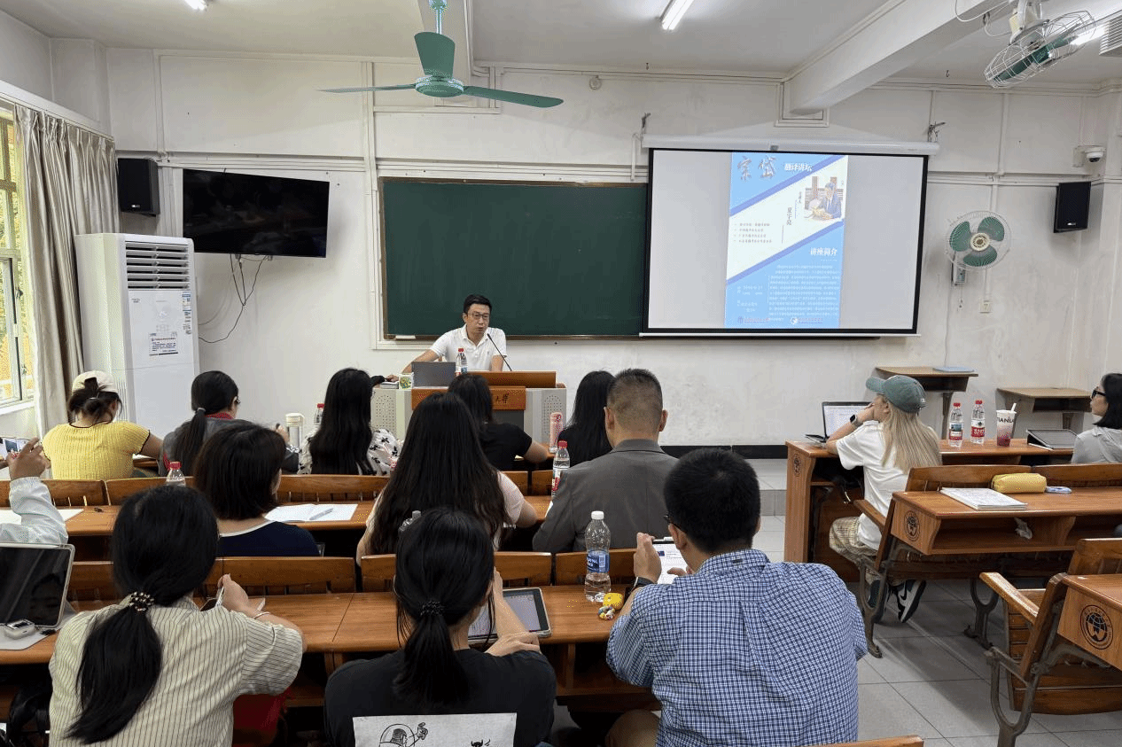 本网讯 2026年4月17日14:00宗岱翻译讲坛在白云山校区二教230教室举行。国家一级翻译、中国翻译协会会员夏宇亮老师应邀为乐天堂 俄语系师生作题为《数智时代会议口译人机翻译对比与协作模式探索》的专题讲座。俄语系主任陈欢主持讲座,俄语系研究生负责人姜超老师出席,俄语系师生积极参与互动,现场氛围活跃。