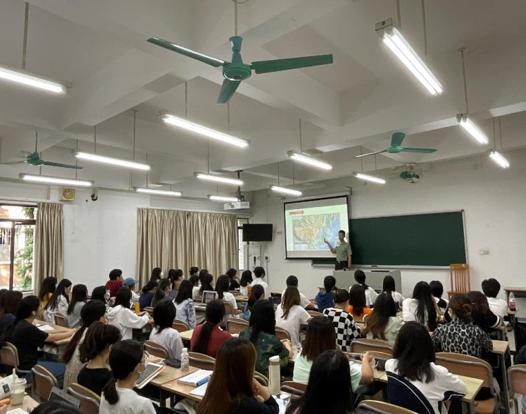 主讲人张冬向同学们介绍了6名英勇的解放军战士的真实事例,生动地描述了中国官兵在敌众我寡危急情形下的战斗精神,“宁可向前一步死,绝不后退半步生”,解放军战士用他们的血肉身躯抵挡外敌,守护人民的家园,捍卫中国的安全。