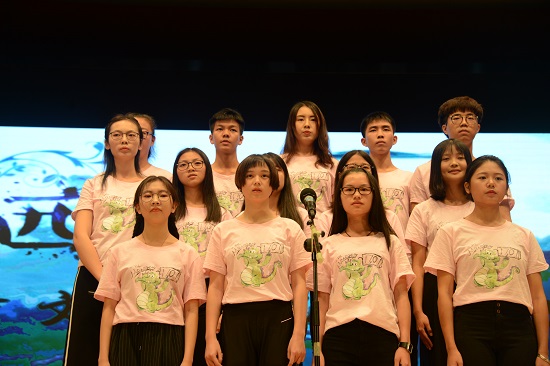 紧接着是由17级各班班导带来的节目《遇见》。温情的歌声中,饱含着他们对这个夏天与新生们相遇相助的感叹。而台下此起彼伏的掌声,也表达了新生们对班导解答他们各种各样的问题,分享他们的喜怒哀乐,陪着他们一起成长的感谢。晚会在掌声中逐渐接近尾声。最后全体人员合影留念,乐天堂