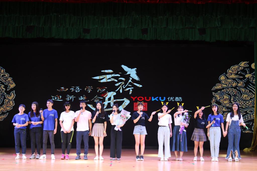 团委书记王馨若老师以及各个语系系主任作为嘉宾到场,与西语学子共同感受火热的迎新晚会现场。晚会以“云衿西寄”为主题,与西语学子学贯中西的志向与风采相呼应,同时也寄托了当代大学生:把握青春的韵律,跟着时代的脉搏,聆听祖国的呼唤的期望。