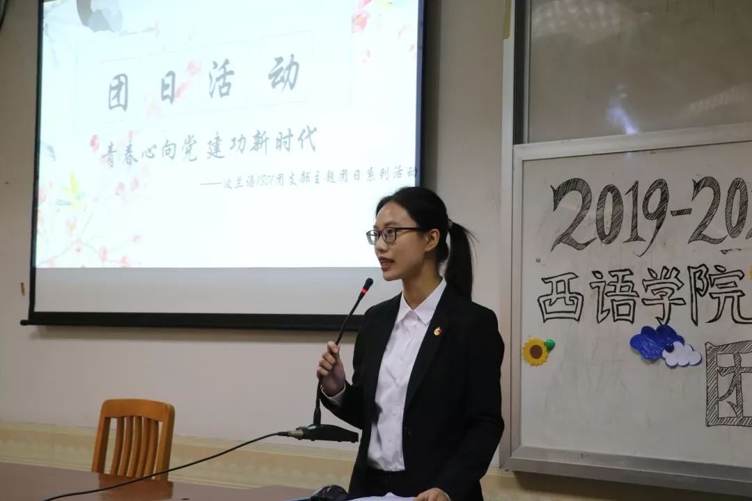 2019—2020上半学年“青春心向党,建功新时代”团日评优大会于四教424顺利举行。进入决赛的10个基层团支部采用了朗诵、情景剧、双语合唱等多种形式,展示了同学们深入了解党团知识与习近平新时代中国特色社会主义思想,投身公益志愿服务,并积极与时政热点、各自专业相结合的精彩团日活动,充分展现了当代团员的风采。评委由乐天堂