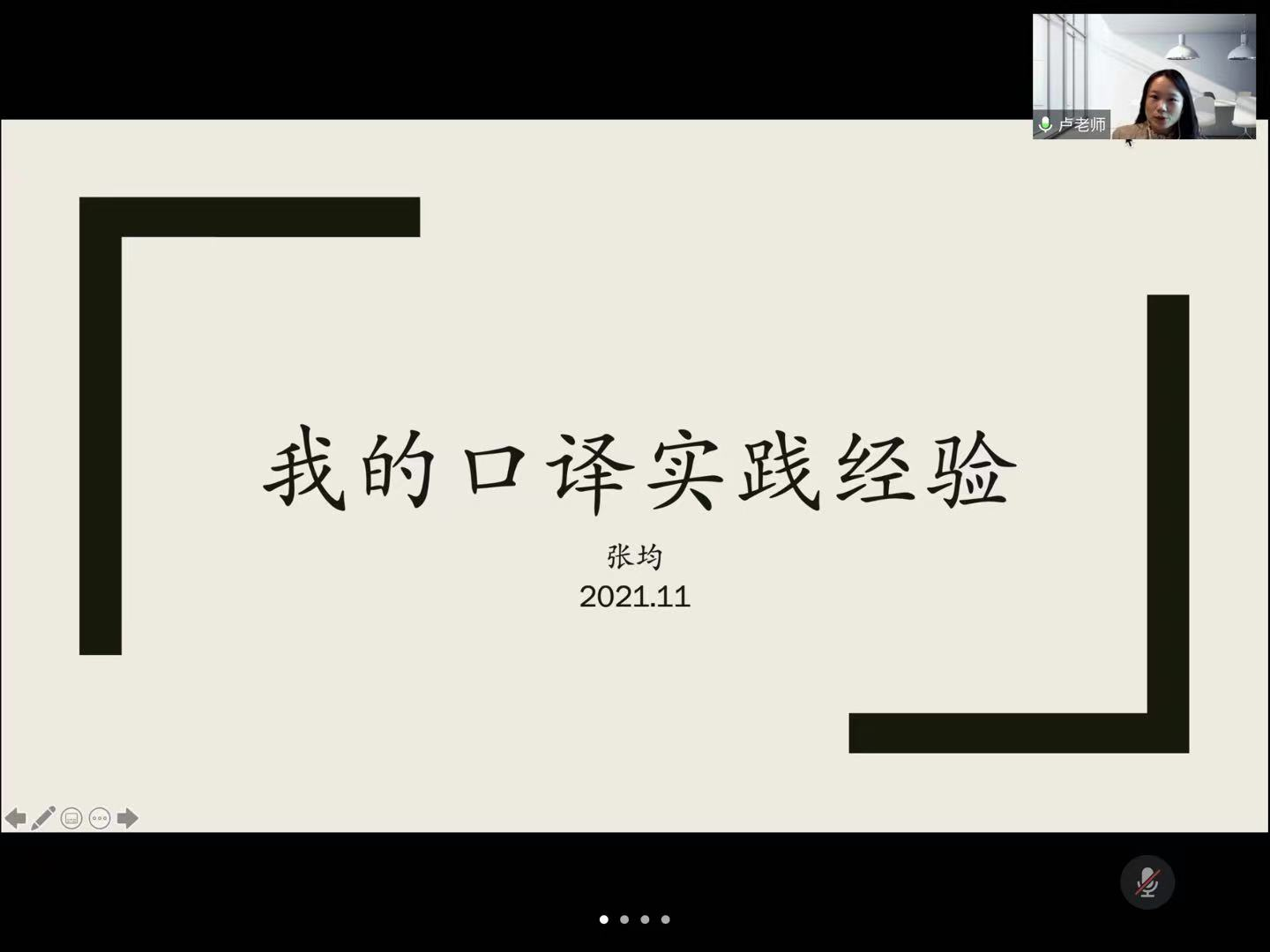 德语系主任卢铭君教授致辞,对张均学长的到场表示欢迎,同时也欢迎来聆听经验的各位同学们。卢老师向同学们介绍了张均学长,并鼓励大家向张均学长学习。线上会议的主持人由20级德语语言文学学硕班长陈怡汝同学担任。