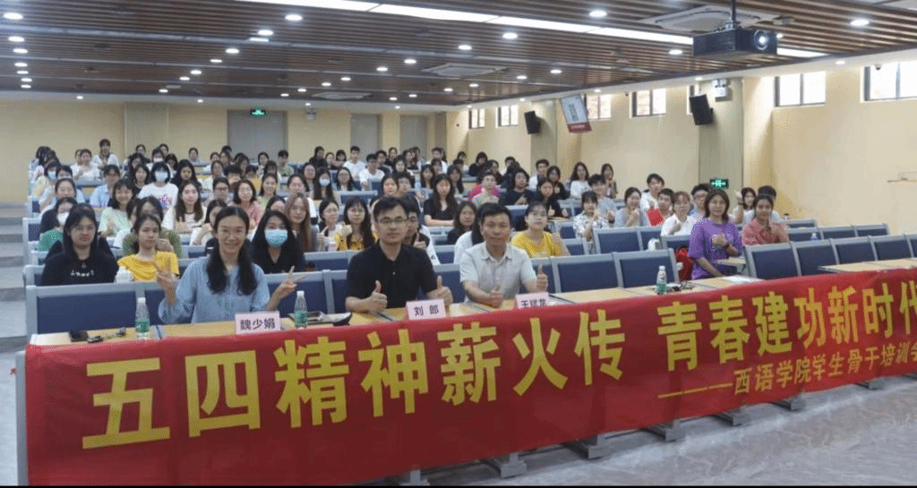 在白云山校区第一教学楼举办学生骨干培训会,校团委书记刘郎为乐天堂