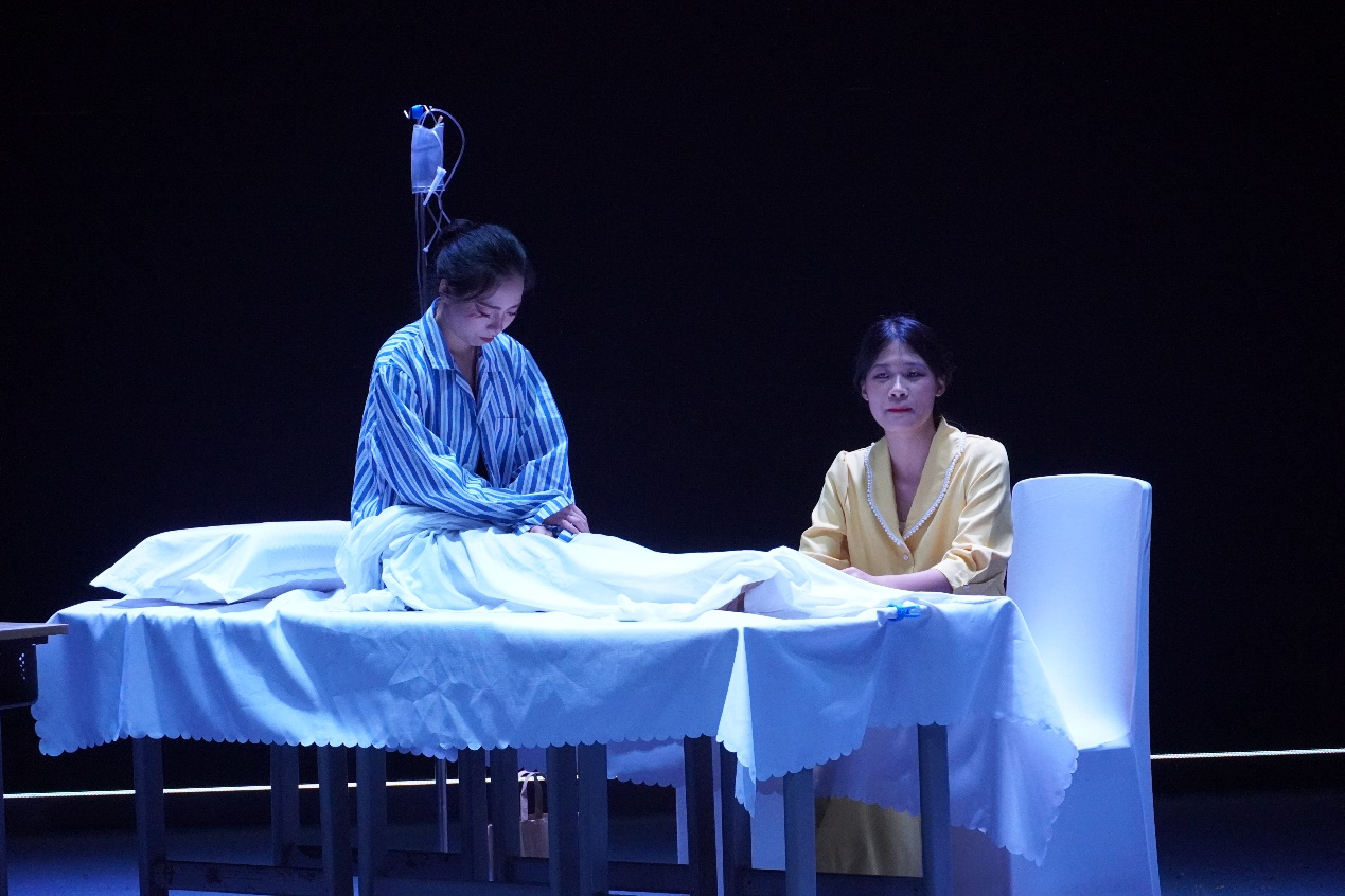 最后上台的法语剧组表演了《戳破》。故事发生在约1960年代的法国。在一个一切期待都建立在经济泡沫之上的家庭里,女主人公的梦想好像又一枚一截就破的泡泡,一切都可以是截破它的那根针。泡泡破碎之时,还剩下什么呢?