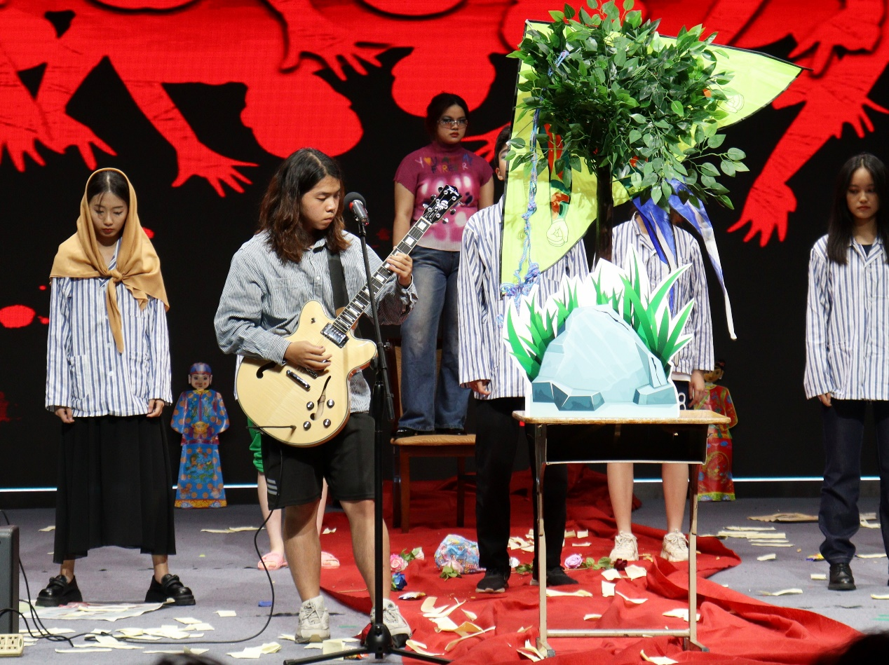 5月19日,德语剧组表演了德国戏剧大师贝尔托·布莱希特的一出寓意剧《四川好人》。这部剧通过神仙下凡游历人间的故事,来讨论一个现实问题:在世风日下、道德沦丧、人心不古的当下,人心的“善”如何才能不被世俗泯灭。到底是改变人?还是改变社会?
