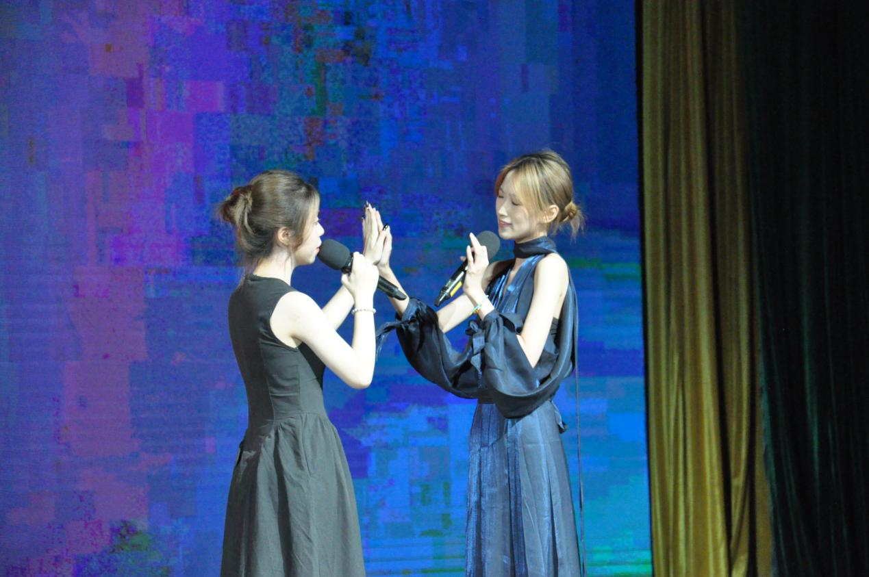 俄语系郭利老师(右一)、22级俄语丁梓晟演唱《山楂树》