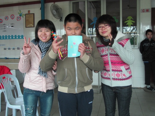 紧接着,一个简单的小游戏“找朋友,齐过关”则让志愿者们与智障儿童顿时“打成一片”,随着相互交流与了解,全场的气氛变得更加温暖愉悦。而随后便到了最令小朋友们开心分发新年礼物的环节:糖果、本子、卡通铅笔。慰问团成员把礼物一一分发到每个慧灵儿童的手中,孩子们也为手中的礼物惊喜连连。