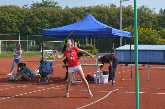 为校运会田赛比赛项目拉开序幕的是女子跳高比赛。在灿烂的阳光下万寒雪、胡梦筠两位选手的每一次助跑、起跳与侧跃都包含着她们的勇于拼搏的精神,竹竿的不断抬高也改不了她们的无畏与坚持。