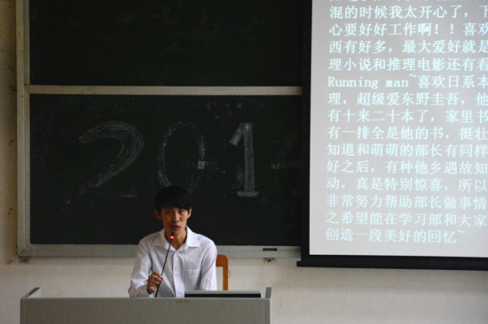 接着,团学各部门部长分别介绍各部门的主要工作和部门成员,不同风格的ppt既有图文也有视频,一一展示了部长们与干事们的风采。在各部长对部门的干事们进行介绍时,现场笑声和掌声不断,为活动营造了欢快活跃的氛围,同时也增进了不同部门的成员之间的友谊。