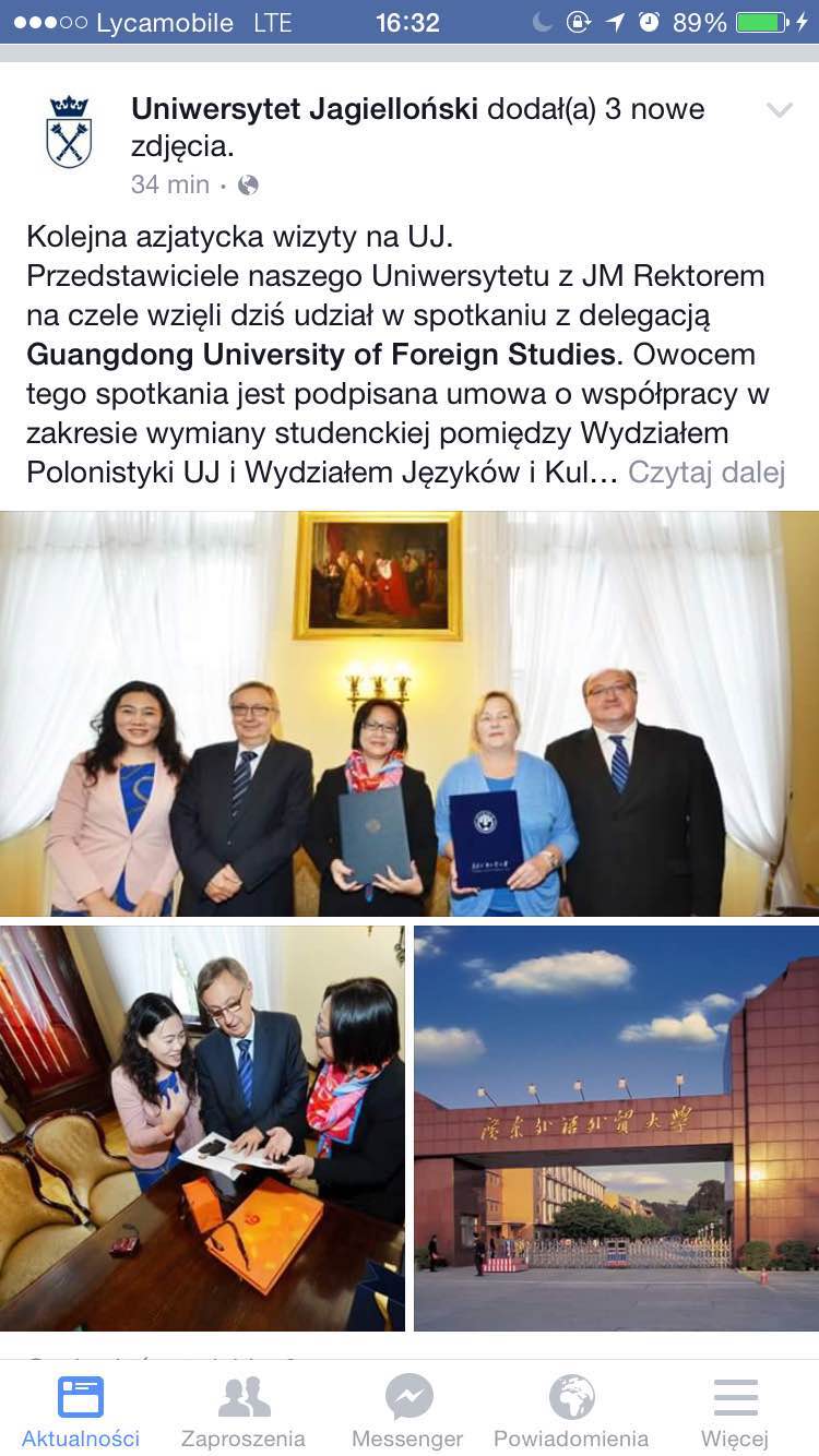 与波兰两所高校合作协议的签署。院系领导先后拜访了波兰高教部相关部门、中国驻波兰大使馆教育处、小波兰省政府等机构,对他们自广外波兰语专业成立以来所给与的支持和帮助表达了感谢,进一步巩固了关系。