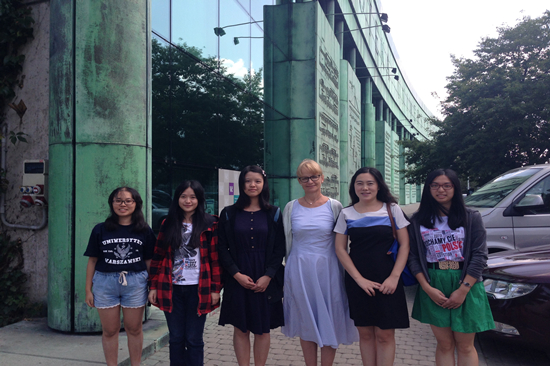 在华大参加暑期班的学子与老师们在华沙大学图书馆前合影