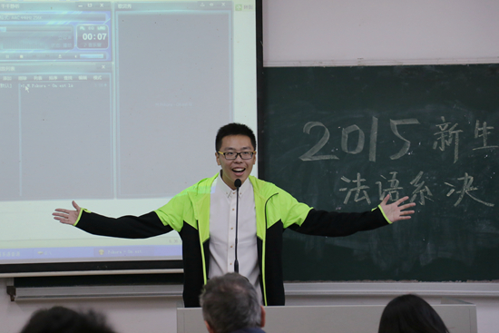 法语语音语调大赛决赛于11月27日晚七点在六教b202展开。在初赛中脱颖而出的24名法语同学们带着他们精心准备的诗歌文段和才艺展示前来参赛。