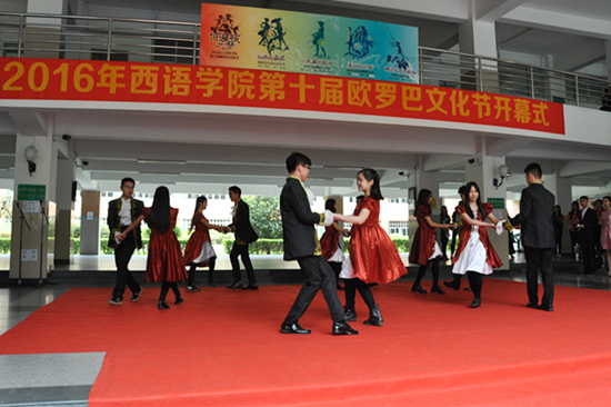 活动当天,晴朗明媚的天气与同学们的热情参与相得益彰。经典院舞《赛思莎》为开幕式掀开了帷幕,欢快洋气的欧式舞步踏出了欧罗巴大陆的优雅风情,赢得观众的阵阵掌声。随后,来自各语系同学用动听的小语种歌曲带领现场观众走进七国的音乐世界,体会各具特色的语言魅力。接着,院舞队精彩华丽的乡村舞也诠释了浪漫的欧式风味。最后由乐天堂
