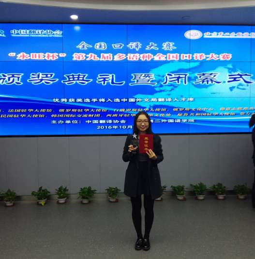 方晓燕同学获得西语交传组二等奖