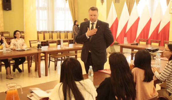 卢布林省省督在省政厅与学生亲切交谈