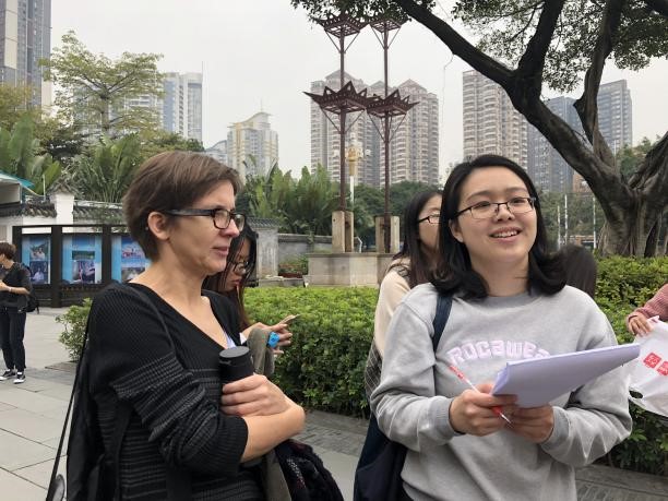 本网讯 为提高学生们的口译能力,波兰语系利用实践周,为大二、大四同学开展了主题为“用波兰语述说广府文化”的课外口译实践活动。波兰语系外籍教师雷娜塔·锡根(RenataSiegień)和宝琳娜·海赫瓦奇(Paulina Chechłacz)作为“游客”,学生们作为“小导游”,一同游览了越秀公园、陈家祠、光孝寺和北京路等羊城景点,用波兰语述说大美广州的故事。