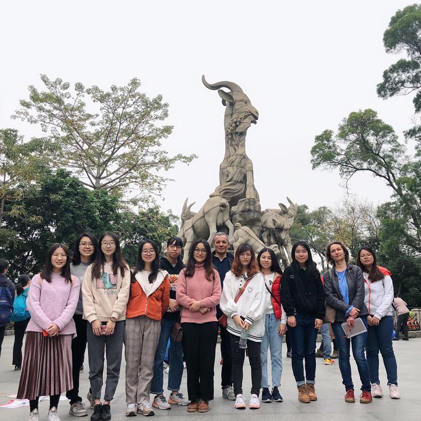 113日上午,同学们首先参观了羊城八景之一的越秀公园(YuexiuPark)。越秀公园是广州最早的公园之一,也是广州规模最大的综合性公园。在简单介绍越秀公园的历史概况后,同学们以镇海楼(BudynekZhenhai) - 中山纪念碑(Monument Sun Yat-sena) - 五羊雕塑(PomnikPięciuKóz)为主线,在寒冬中仍绿意盎然的越秀公园中穿梭,沙沙簌簌的波兰语在微风中格外动人。路途中,同学们还就明代古城墙(Mur dynastii Ming)作了介绍。