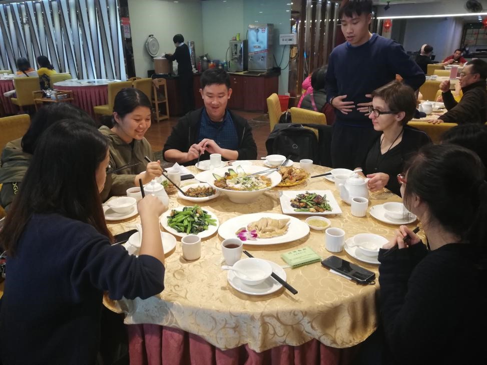 午餐时间,为了深化实践主题,大家特意寻觅了一家粤菜馆,其特色菜式,如无骨鱼(ryba bez ości)、白切鸡(kurczakpokantońsku)、皮蛋(stuletnie jajko)、茄子炒豆角(bakłażan z fasolami)等都是口译的第一手材料。