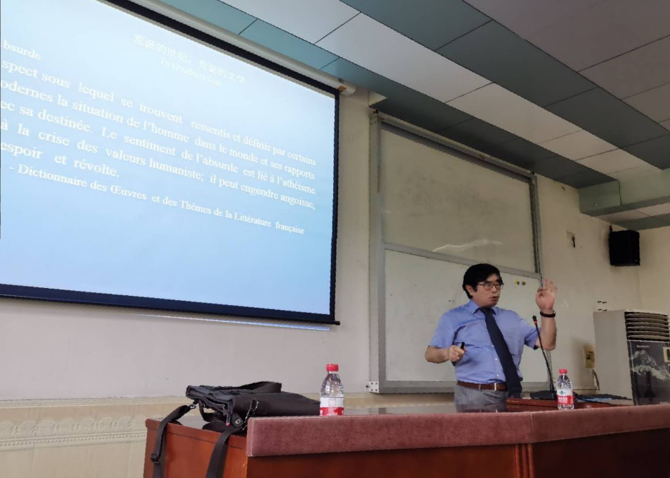 李志清教授将二十世纪法国文学进行了概括性的梳理和总结,试图使用“荒诞”两字将20世纪的万千世界与绚烂文学有机联系起来,使法语专业学生能够从欧洲的传统与哲学角度剖析20世纪的法国文学。讲座主要介绍了五种流派:达达主义、超现实主义、存在主义、新小说(反小说)以及荒诞派戏剧(反戏剧)。