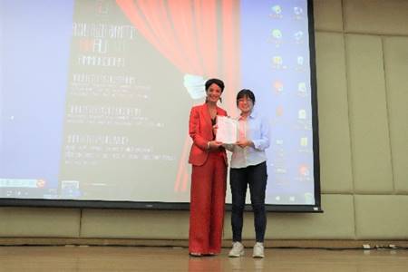 精彩的讲座后,白露茜女士向意大利语语言文化知识竞赛的获奖同学颁奖。本次知识竞赛由意大利驻广州总领事馆组织,获奖同学分别是获第一名的张羽扬、第二名的曾韵琳和第三名的黄文熙。