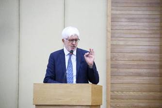 在白露茜总领事致辞后,贝佩·塞沃尼尼先生精彩生动的演讲正式开启了本届意大利语言周的文化之旅。