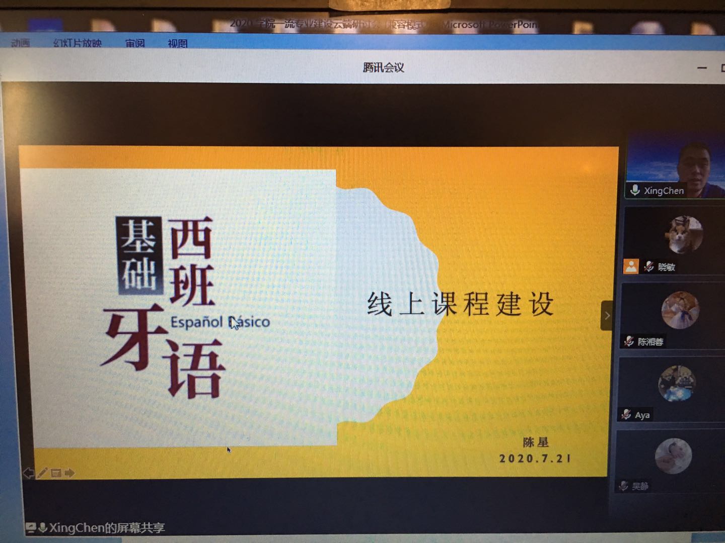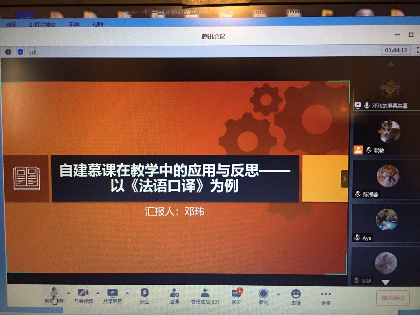 西班牙语系主任陈星老师为大家详细介绍了“基础西班牙语”线上课程建设的过程。从最初的懵懵懂懂到制作的点点滴滴,从线上教学工作的组织到线上线下课程如何结合......虽然每一步都走得非常艰难,但是团队的老师们从来没有退却,有商有量互帮互助,痛苦着同时也快乐着。正是这种团队合作精神让“基础西班牙语”在一个学期的“抗疫时间”收获了10000多名线上学习者。法语系邓玮老师为大家介绍如何将线上课程运用到实际的教学过程中。邓玮老师主持的“法语口译”课程是国家级精品资源共享课程。该课程建设历史悠久、基础扎实,面临着如何突破新的发展瓶颈问题。邓玮老师从翻译的理论基础出发,分析教学中的实际问题,对课程进行整体规划,寻找慕课和面授课之间的接口。这种钻研和创新的精神最终受益的是学生,最终收获的是课程和专业的发展。“基础西班牙语”和“法语口译”线上课程将于今年底登上“学习强国”平台。