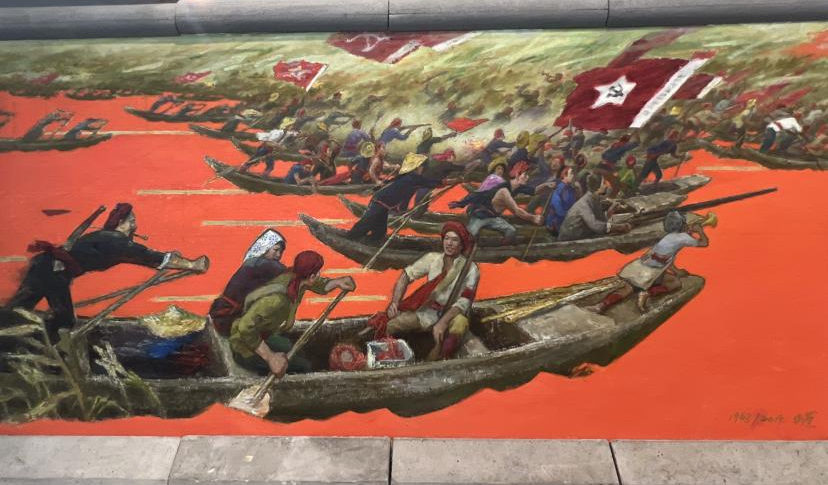 1956年,恽老以洪湖地区革命斗争故事为主题,创作了油画《洪湖黎明》,画中赤卫队员由陆路向大堤开进,主体在画面的左上方,展示赤卫队大部队的连绵不绝,彰显出革命力量已蓄势待发,终将迎来灿烂的黎明。如今,89岁的他仍在坚持创作,又完成了一幅以朝阳为主题的洪湖画作《洪湖红》,从“黎明”到“朝阳”,寄托了恽老对洪湖百年沧桑巨变最深沉的礼赞。
