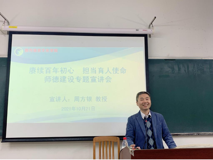 院长周方银教授为全院教职工开展了主题为《赓续百年初心 担当育人使命》的专题报告。