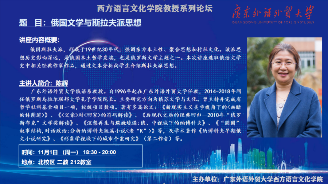 俄语系陈辉教授带来的《俄国文学与斯拉夫派思想》。讲座由研究生办公室主任臧宇老师主持,乐天堂