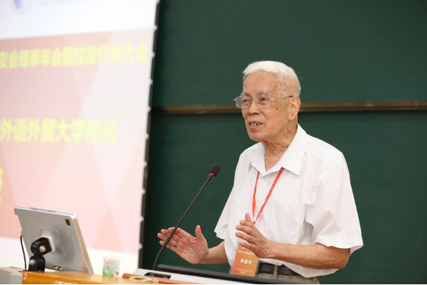 校长徐真华讲话。徐真华教授引用法国作家名句阐述校友会的工作意义,他将校友会比作“生生不息的生命之河”,希望更多代表新生力量的新校友加入校友会,努力张扬广外精神、西语风格;希望校友们走向社会后,不忘初心使命,寻找人生意义、创造生命价值;希望优秀校友更好的帮助一代代毕业生,搭建好桥梁纽带,将广外西语的优良传统传扬到世界各地。