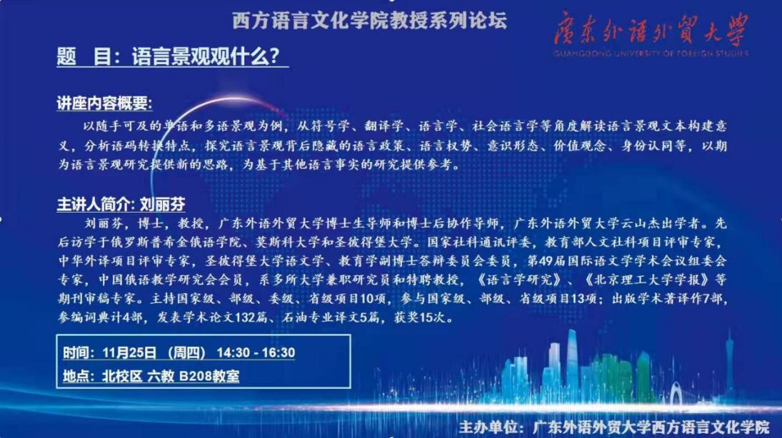 俄语系刘丽芬教授主讲《语言景观观什么》。乐天堂